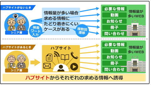各ページへ高齢者でも容易にアクセスすることができるハブサイトを制作した。