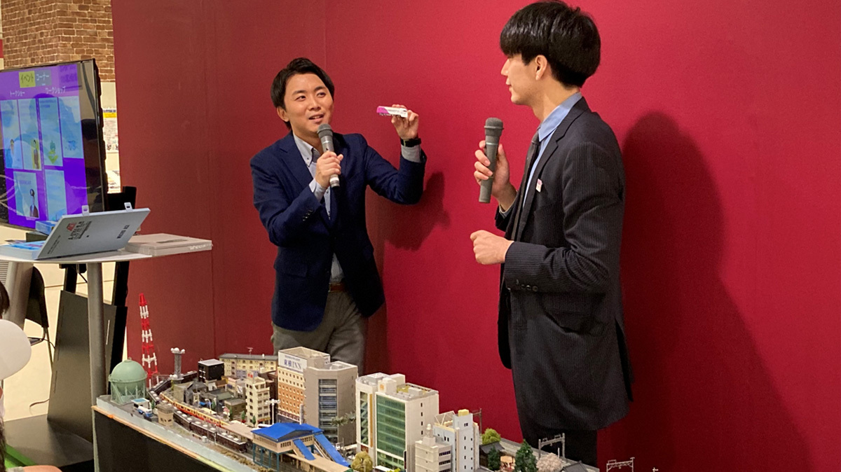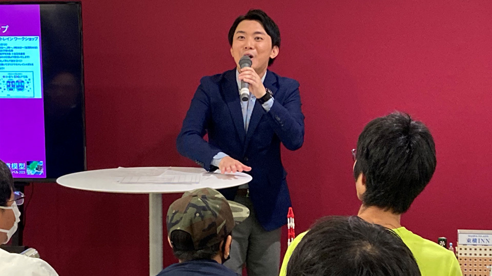 山本隆弥アナウンサーが鉄道模型イベントでトークショーを実施