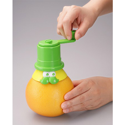 市販のグレープフルーツに差し込みレバーを回すと生絞りグレープフルーツジュースが完成します。