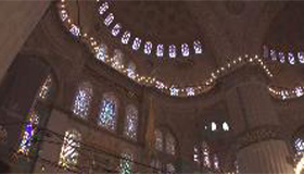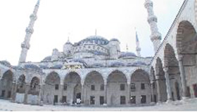 世界遺産に登録されているイスタンブール歴史地域の歴史的建造物群のひとつであり、イスタンブール観光の目玉ともいえるトルコを代表するモスク。内部の壁は約2万枚の青を基調にしたタイルが敷き詰めてあり、「ブルーモスク」の名で呼ばれ愛されている。