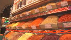 ガラタ橋の近くにあり、大きなL字型をした市場。約90店舗が軒を連ねており、多くの店で香辛料を販売していることから、別名「スパイス・バザール」とも言われている。アーケードの天井やアーチには中東を感じさせる装飾が施され、エキゾチックな雰囲気が広がっているのも魅力。