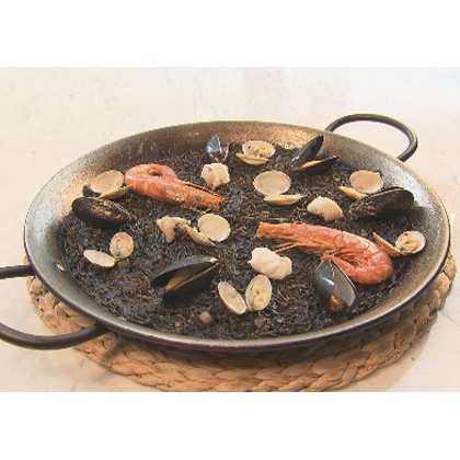 - 「イカスミのフィデウア」は、バレンシア米ではなくパスタ(フィデウア)で作るパエリアでイカスミの濃厚な味わいが楽しめる。