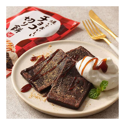 - チョコレートの甘みにお餅特有のもちもちした食感が楽しい!お餅にチョコをたっぷり練りこんだ、やさしい甘さの切り餅。
