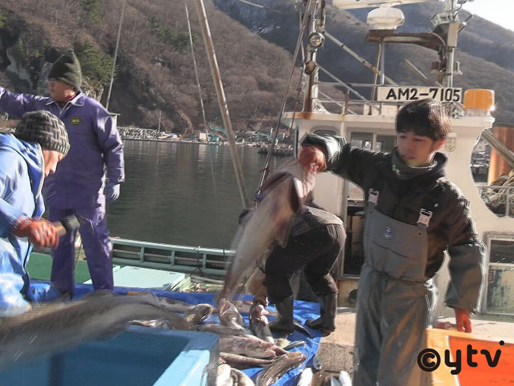 昌太さんが暮らす佐井村牛滝地区は、青森空港から電車とバス、タクシーを乗り継いで約4時間。四方を山と津軽海峡に囲まれた秘境で、約100人いるこの地区の住民のほとんどが漁業に携わる漁師の町だ。冬になると産卵のために陸奥湾へやってくるマダラは濃厚な白子が獲れることで全国的にも知られ、村の漁師にとってタラ漁の最盛期である12月・1月が1年のうちで一番の稼ぎ時。この2か月間は、昌太さんも朝6時からほぼ毎日荒れた津軽海峡へ向かう。多い時には1つの網で3000匹も獲れるといい、水深約60メートルから重い網を引き揚げるのはかなりの重労働。それでも昌太さんは、「キツいけど、魚が好きだから。魚を一番に見られるのが楽しい」と語る。午前10時に港へ戻るとマダラの出荷作業に取り掛かり、すべてが終了すると、親方の家で昼ご飯を食べるのが佐井村に来て8年続く日課だ。
