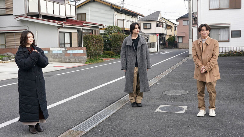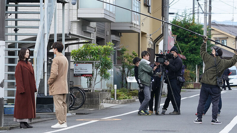 11月下旬、底冷えする寒さの中で、記憶を失くす前の芽衣が住んでいたとされる自宅アパート前にて最初のシーン撮影となった小野と小池。スタッフからの出演者紹介が終わると、早速監督との段取りを確認して撮影がスタートした。